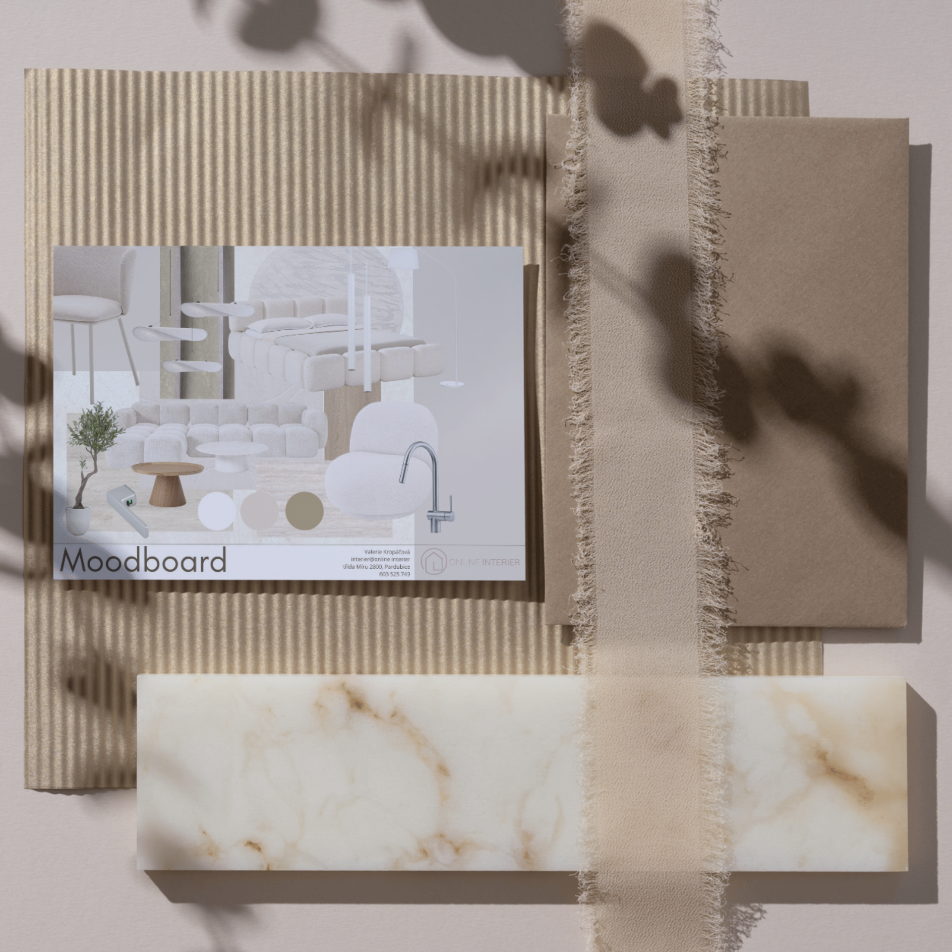 • Moodboard s vybranými prvky a materiály